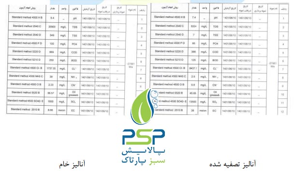پیاده سازی کامل تجهیزات پساب فنرسازی به همراه مدارک قبل و بعد از فرآیند تصفیه پساب کارخانه